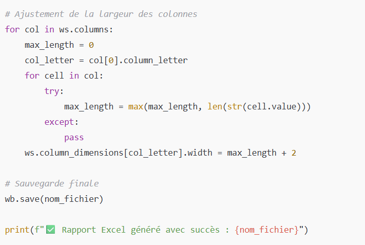 C’est un excellent exercice pour apprendre à manipuler Pandas et Excel dans un contexte professionnel.