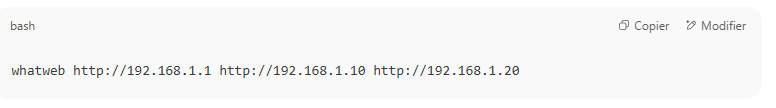 Une fois que vous avez identifié les IPs, utilisez whatweb pour scanner :